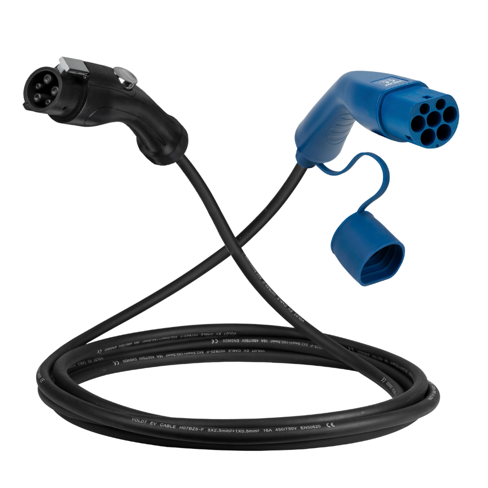 Tipo 1 - tipo 2 | 1 fase | 32a | 7,4kW cabo de carregamento