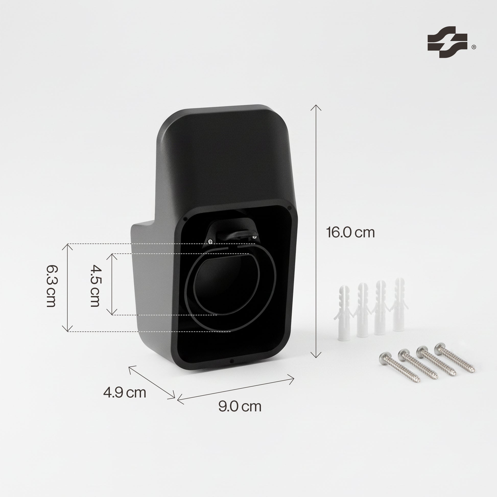 O suporte de ficha Voldt® para cabos de carregamento EV Tipo 2 foi concebido para manter o seu cabo de carregamento limpo e organizado. Ao montar o suporte na parede, evita que o cabo fique no chão, o que prolonga a sua vida útil e reduz os riscos de tropeçar. O suporte é feito de PVC leve e vem com os parafusos necessários para uma instalação fácil. Graças ao seu design inteligente, a ficha de tipo 2 encaixa firmemente no suporte, mantendo-a no lugar com segurança.