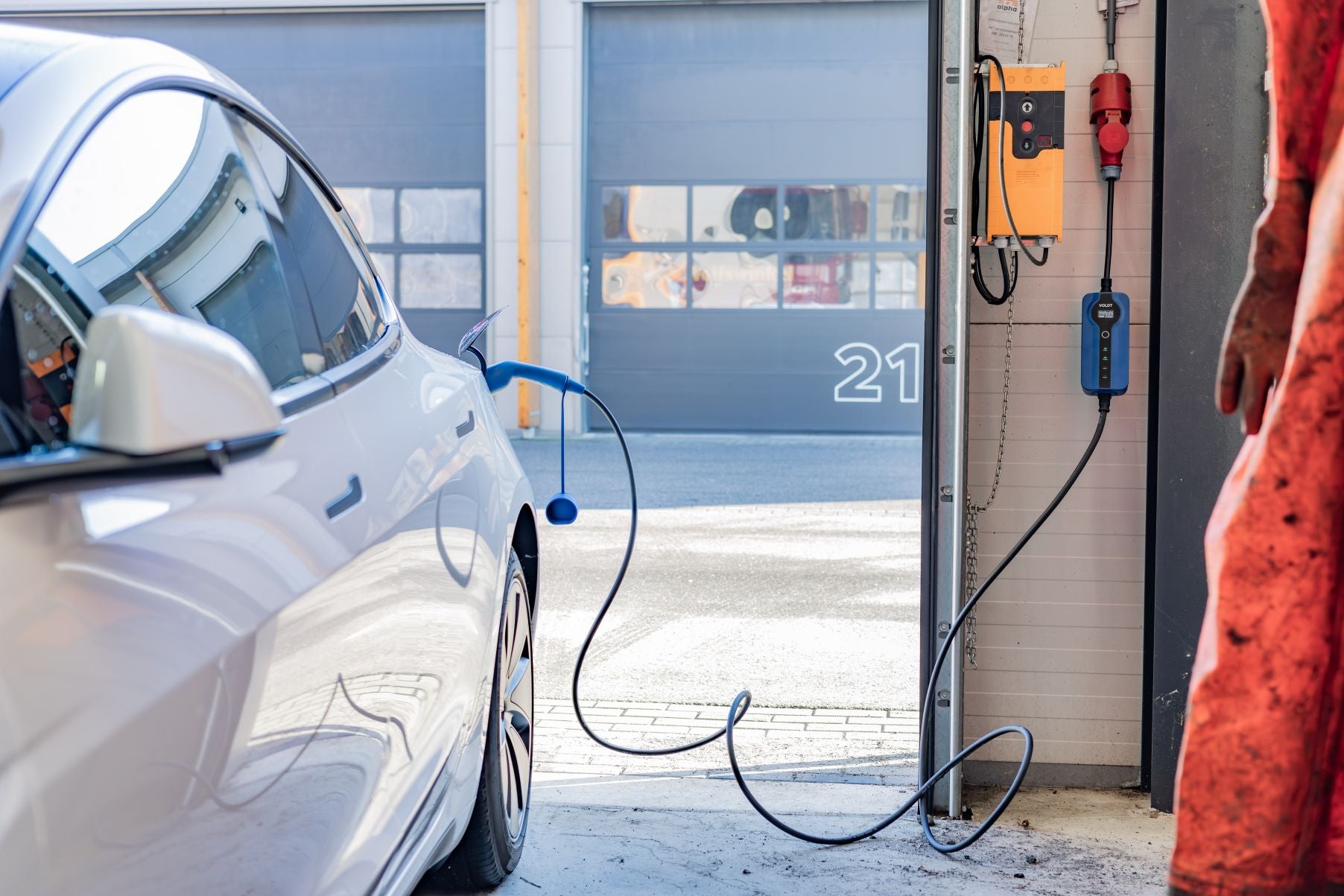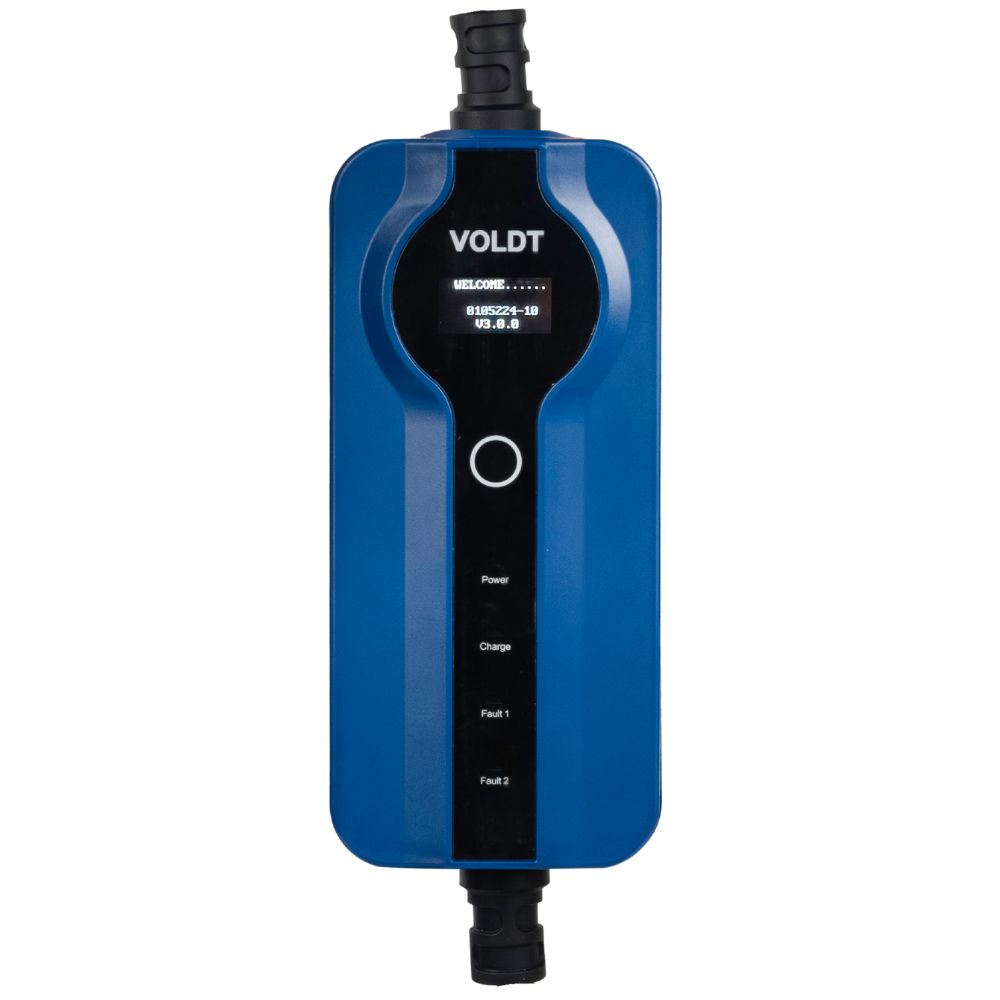 O Voldt® Sitecharge 2x22kW pode ser ligado a qualquer tomada CEE de 5 pinos, dependendo do cabo de entrada. Permite carregar dois veículos elétricos em simultâneo – até 22 kW cada (capacidade máxima de carregamento de 63 A).