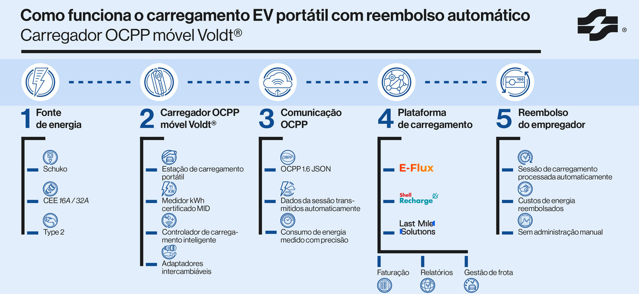 1. O que diferencia o carregador Voldt® Mobile OCPP de um cabo de carregamento padrão?
